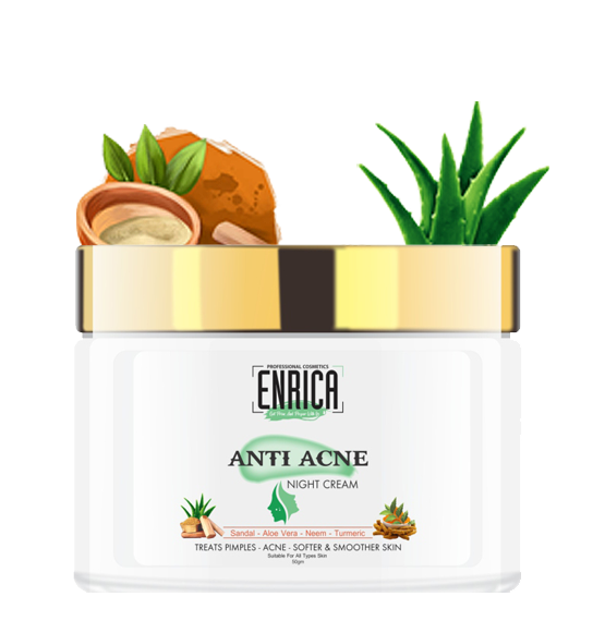 ENRICA ANTI ACNE NIGHT CREAM FOR MARKS, DARK SPOTS REMOVAL WITH NEEM, SANDAL, TURMERIC AND ALOE VERA.